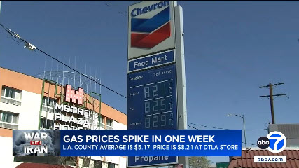 ABC7 news, $8 gas downtown Los Angeles, YouTube, here.