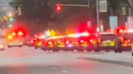 Ambulances, armored vehicles and police cars at side streets. (Note: The picture is a screenshot taken from video filmed at the scene on April 3 or 4.)