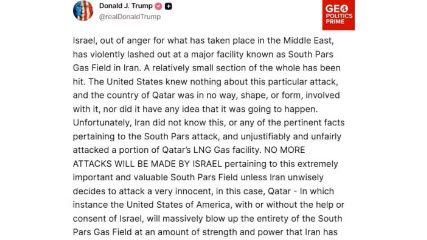 Trump talks tough, calls on Israel to halt South Pars strikes